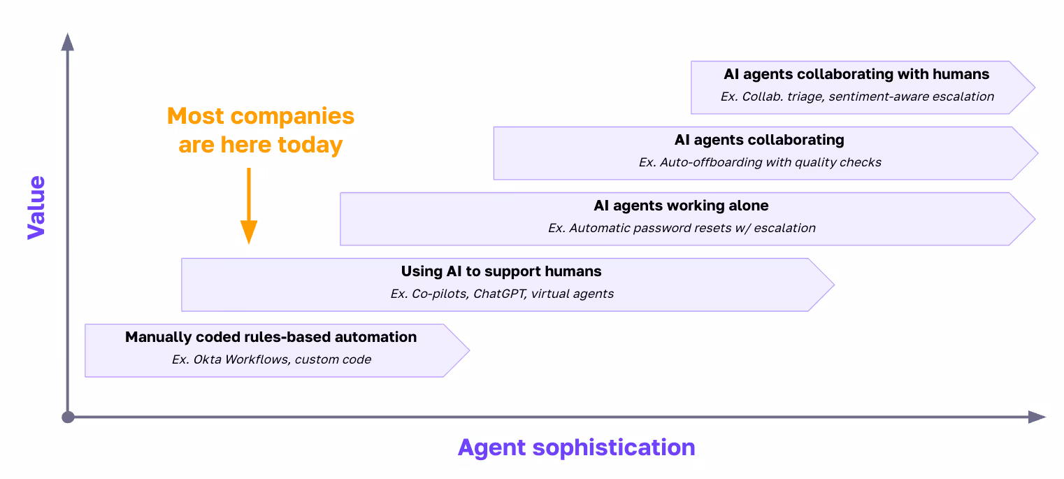 These collaborative agent workflows are especially powerful in environments with lots of SaaS sprawl and policy complexity. They’re still only handling the common-case paths, but they can handle slightly more inter-domain complexity than the single-agent scenario.