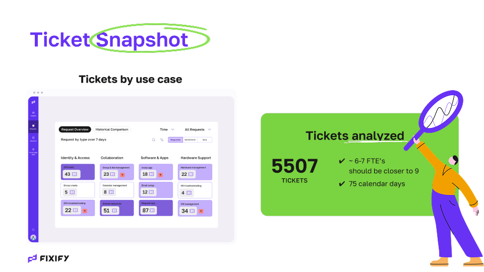 There isn’t one. Fixify’s Ticket Snapshot is designed to show IT leaders what Fixify’s AI-powered insights can do using their own real data — zero commitment required.